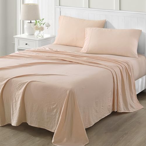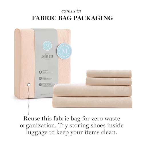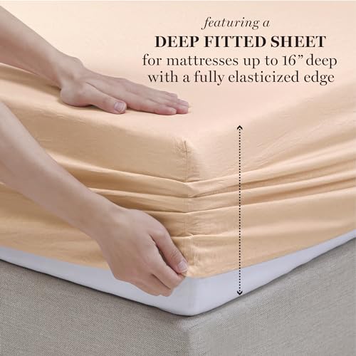 Martha Stewart Ultra Soft Brushed and Washed Microfiber 4 Piece Queen Sheet Set, Blush Pink, OEKO-TEX STANDARD 100, Deep